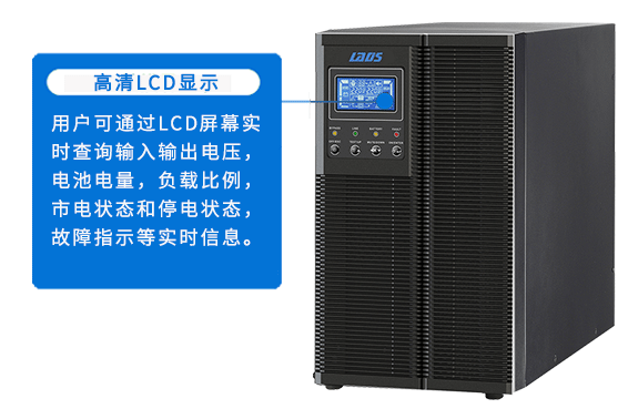 用戶可通過LCD屏幕實時查詢輸入輸出電壓,電池電量,負載比例,市電狀態(tài)和停電狀態(tài),故障指示等實時信息。